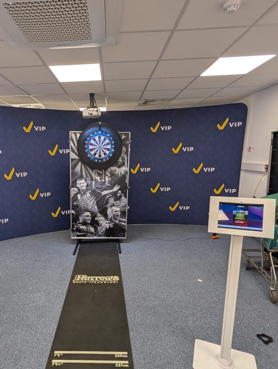 Our interactive dartboard hire delivers a modern twist on a classic pub game, combining traditional darts with digital scoring, interactive games and competitive gameplay. Perfect for exhibitions, corporate events, team building activities and promotions, interactive darts creates instant engagement for players and spectators alike.