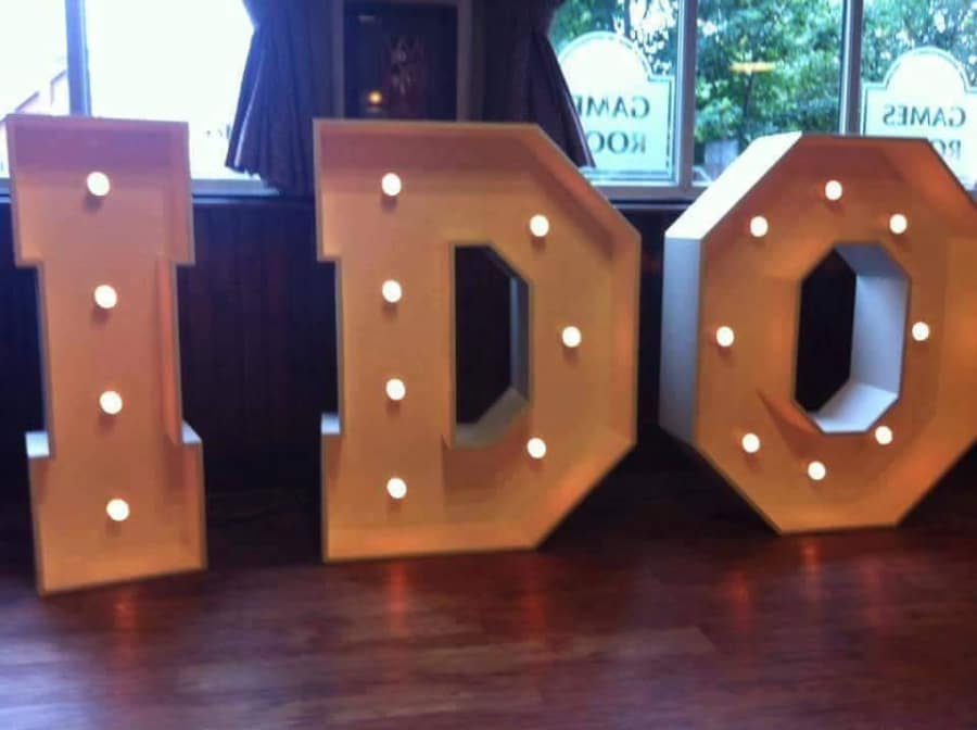 Transform your special occasion into an unforgettable celebration with our stunning "I DO" LED Letters. Perfectly designed to light up weddings, parties, proms, and other remarkable events, these illuminated letters are a must-have for anyone looking to add a touch of elegance and charm. Our LED letter hire service ensures that you have access to top-quality, handcrafted light-up letters that bring your event to life in Wigan, Liverpool, Manchester, Birmingham, and Nationwide, UK.