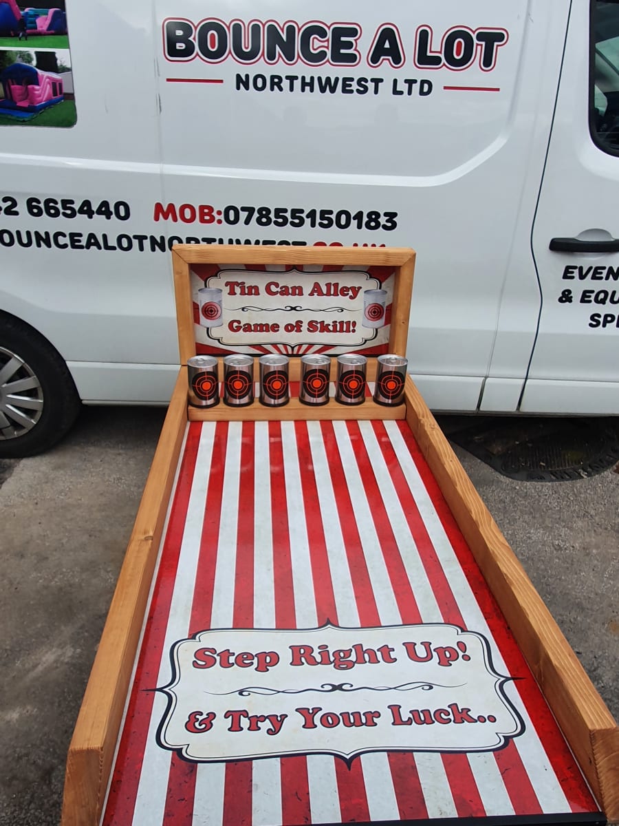 Our Retro Carnival Game Hire Tin Can Alley in Nationwide, Birmingham, Warrington, Preston, St Helens, Bolton, Wigan, Manchester, is designed to bring joy and nostalgia wherever you are. We offer delivery and setup, making your event planning seamless and stress-free. Enjoy the convenience of having an exciting game right at your doorstep, no matter your location.