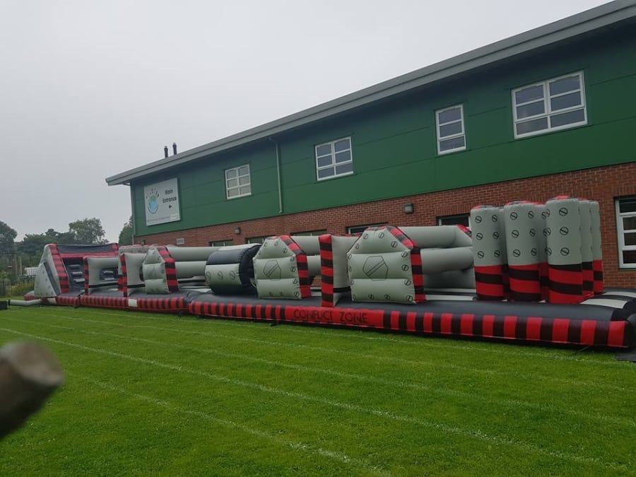 The obstacle course comes in 3 parts with the slide being separate so you can hire them out simultaneously if necessary!