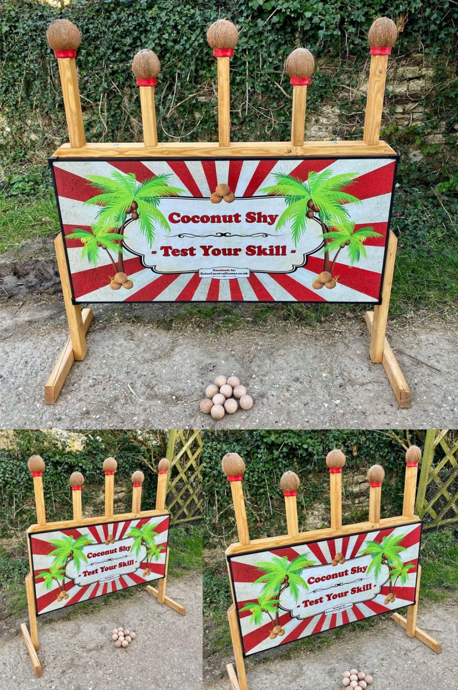 Coconut Shy is a classic carnival and fête attraction that has been entertaining guests of all ages for generations. Instantly recognisable and always popular, this traditional fairground game is the perfect addition to community events, school fêtes, fairs, and themed celebrations.